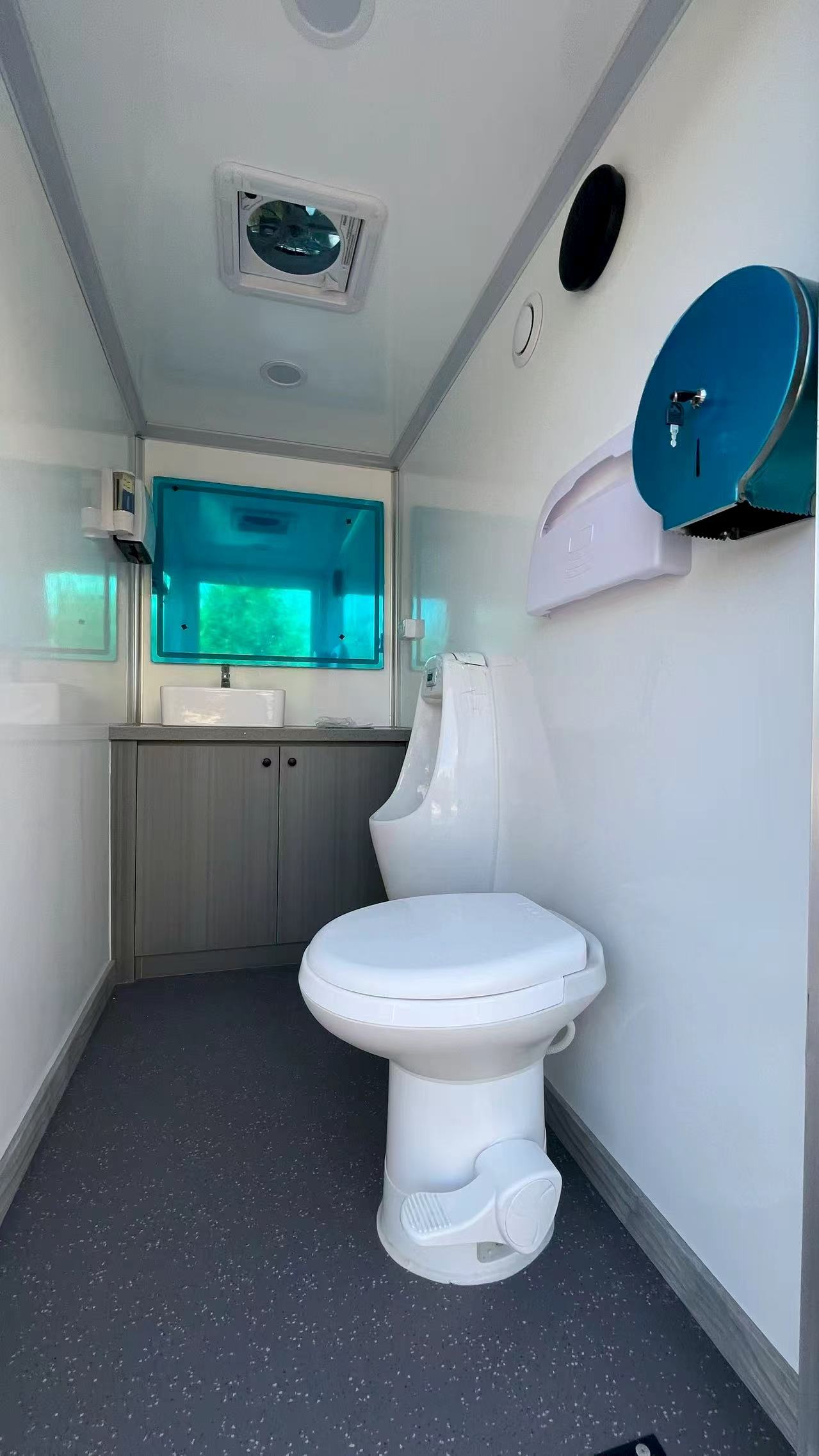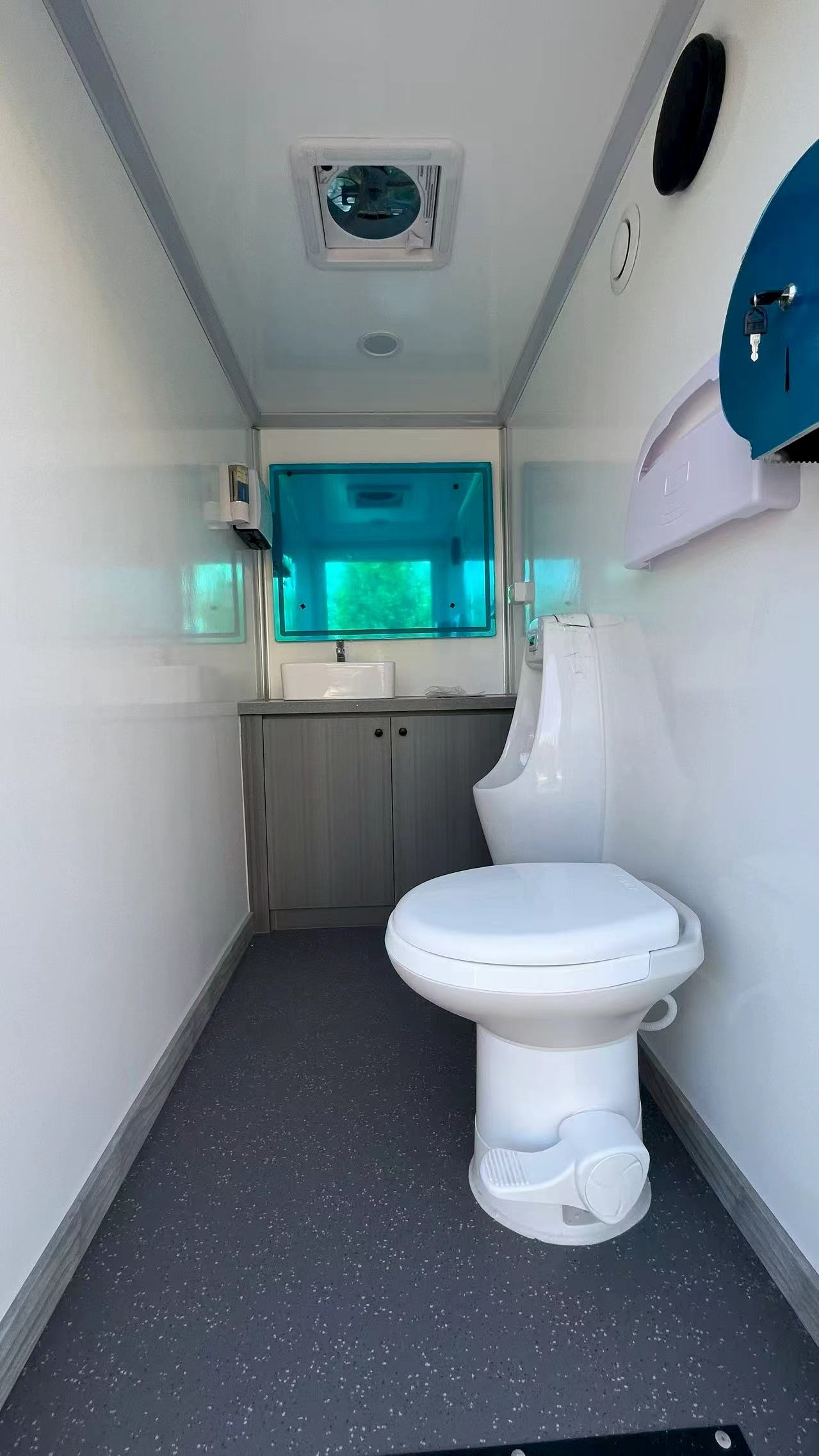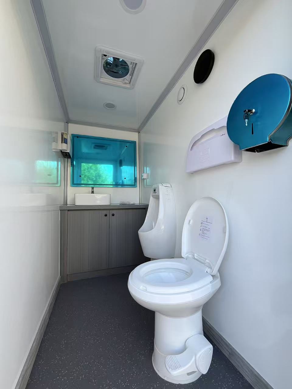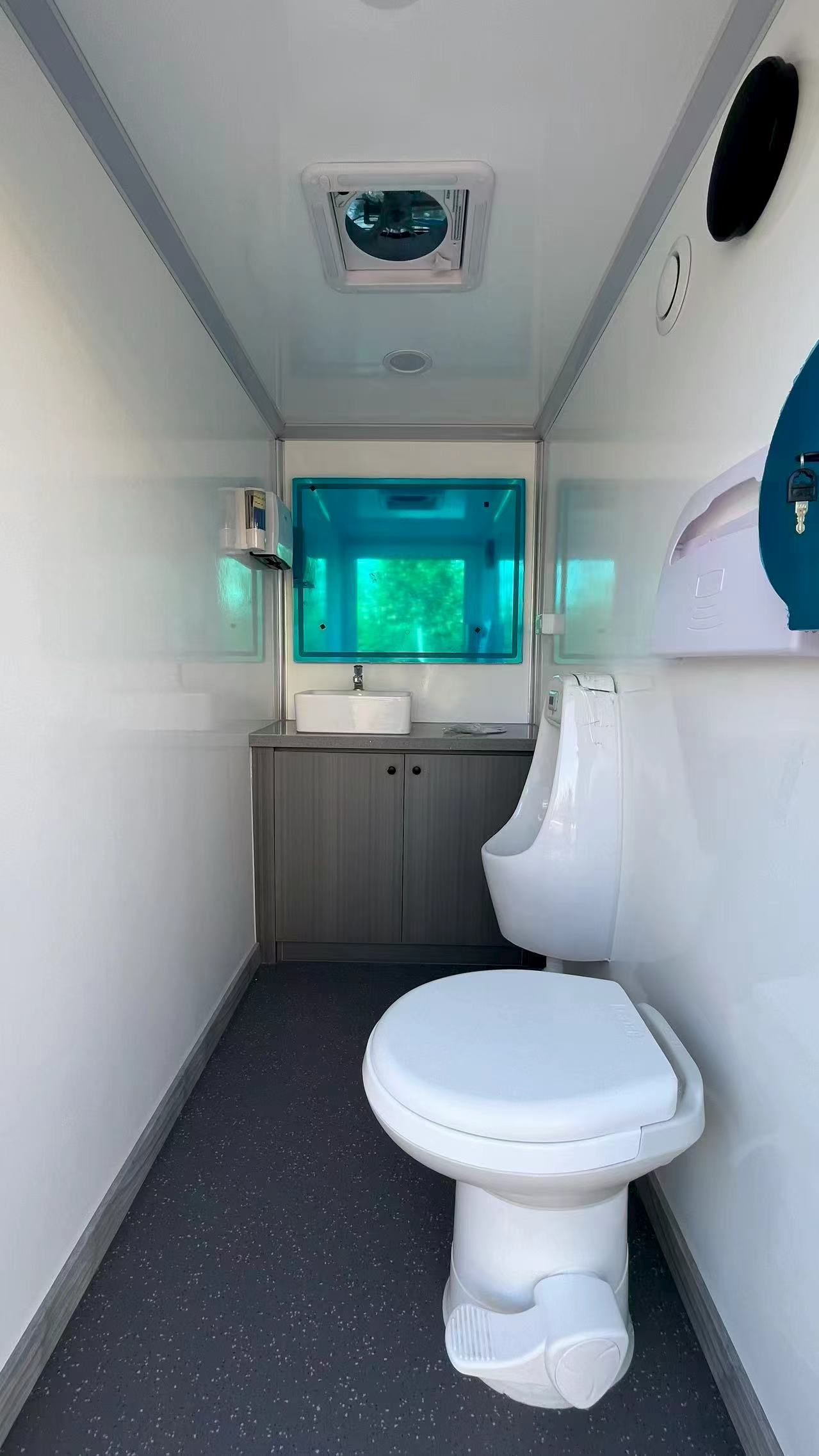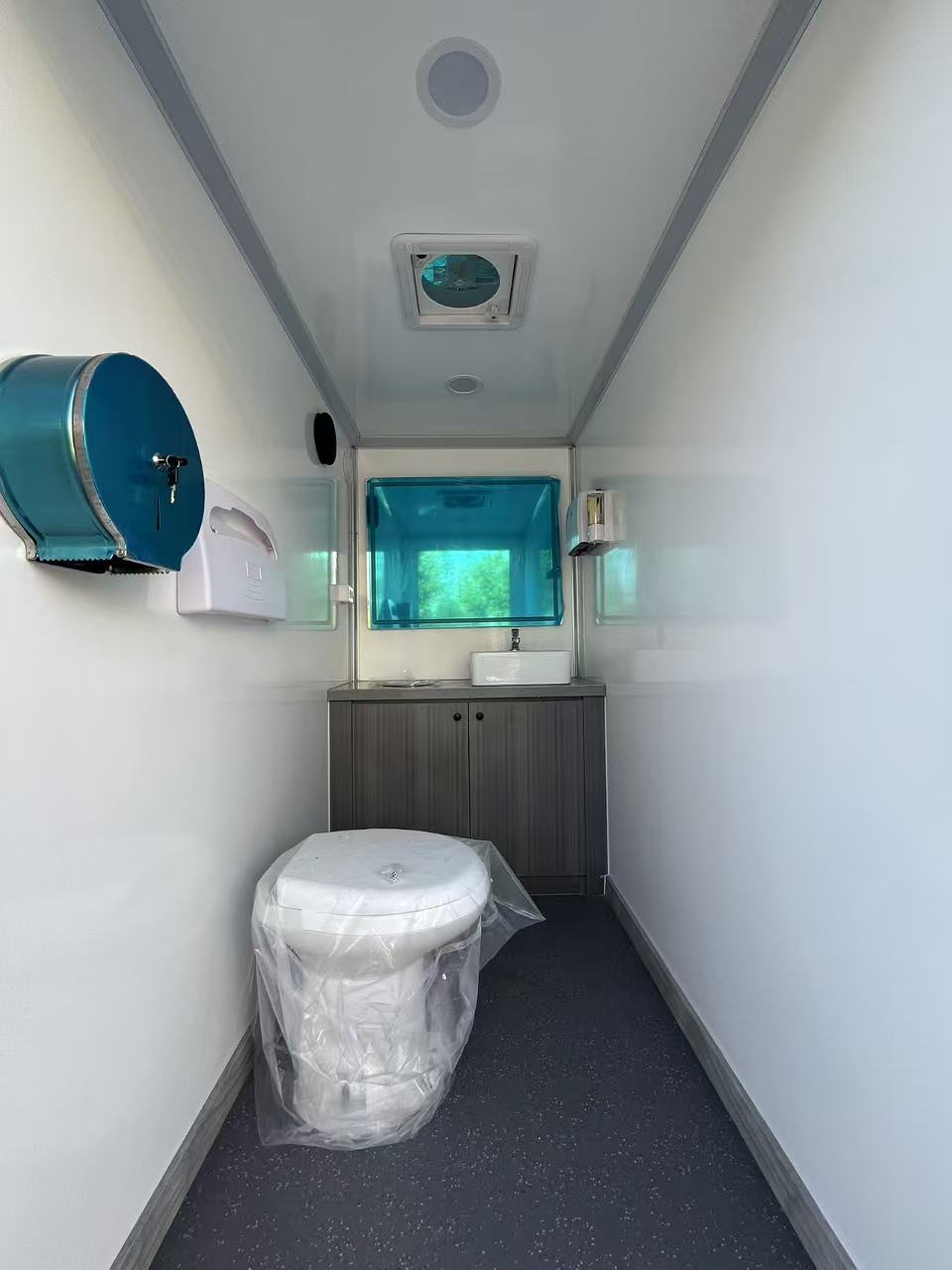 The multi-unit layout of the easy-to-clean white workstation mobile toilet is suitable for places where many people gather